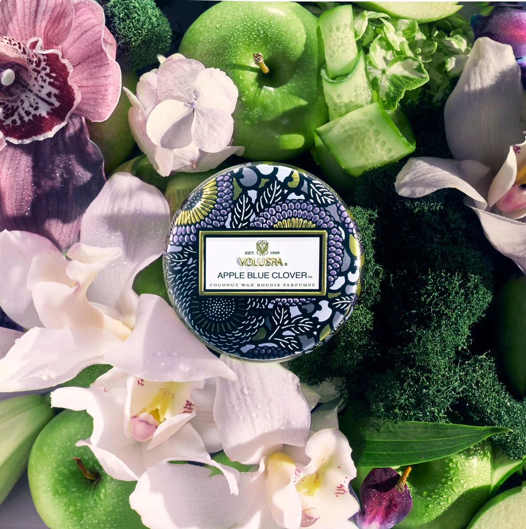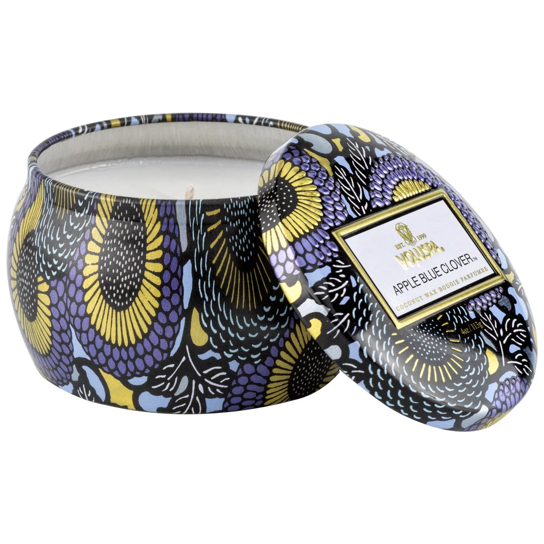The perfect size to pepper throughout a room! As enchanting as the aroma itself, this tin features bold colors swirling across the Japanese-inspired designs.