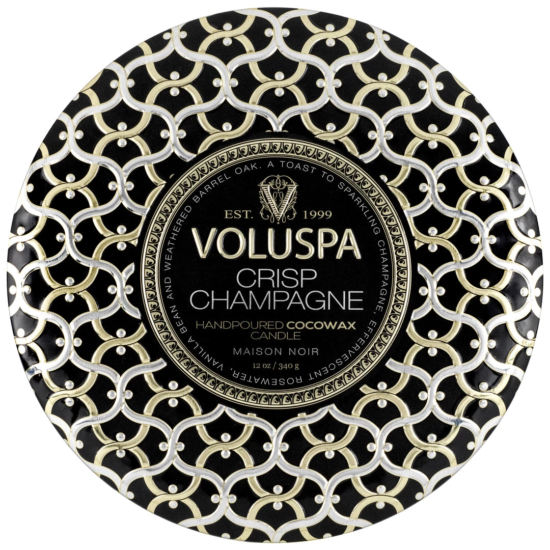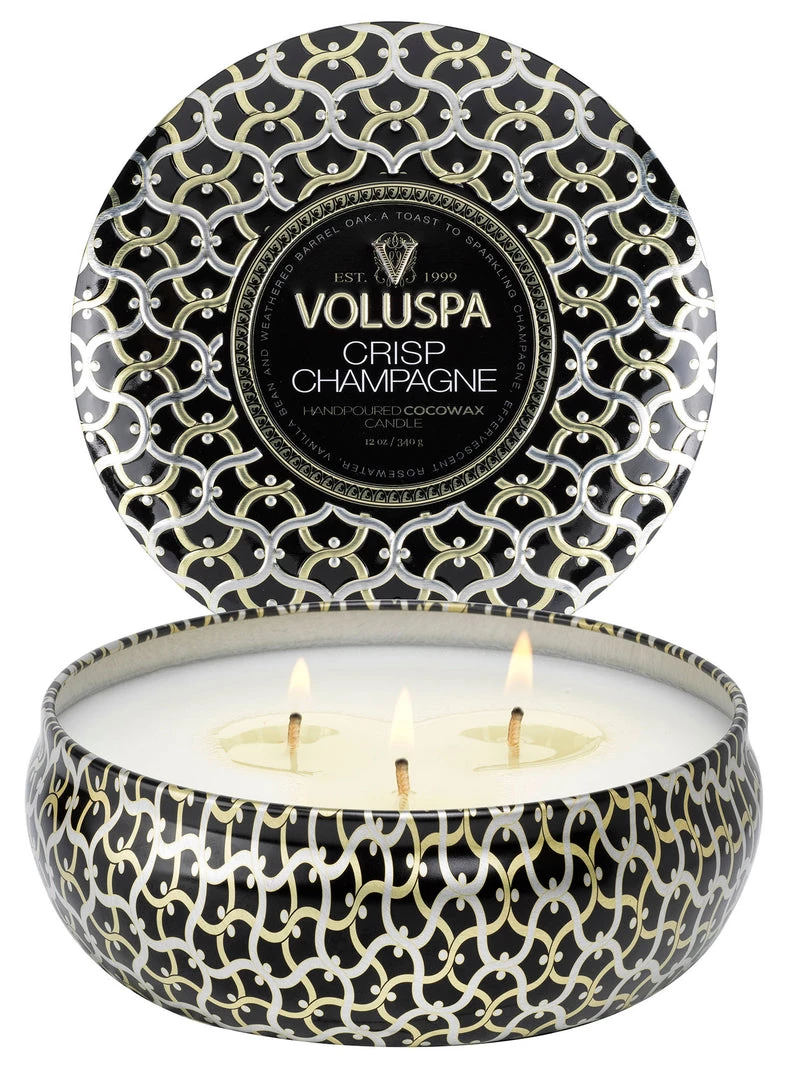 Our iconic tin takes on a new look and feel adorned in the Maison pattern emboss. A graceful urn-shaped container featuring three wicks creates a generous melted wax pool and ample fragrance throw while burning. This 12 ounce tin makes a statement on its own and includes a coordinating lid, which can be used to extinguish the flame.