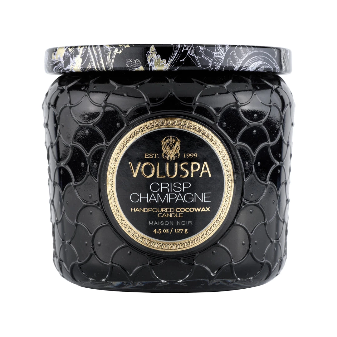 A surprising hint of decor for any space, the Petite Jar Candle is small yet eye-catching with glass embossed in the Maison Collection pattern. A metallic decorative lid can be used to extinguish the flame or keep the candle dust-free when not in use. This candle makes the perfect travel companion or thoughtful gift.