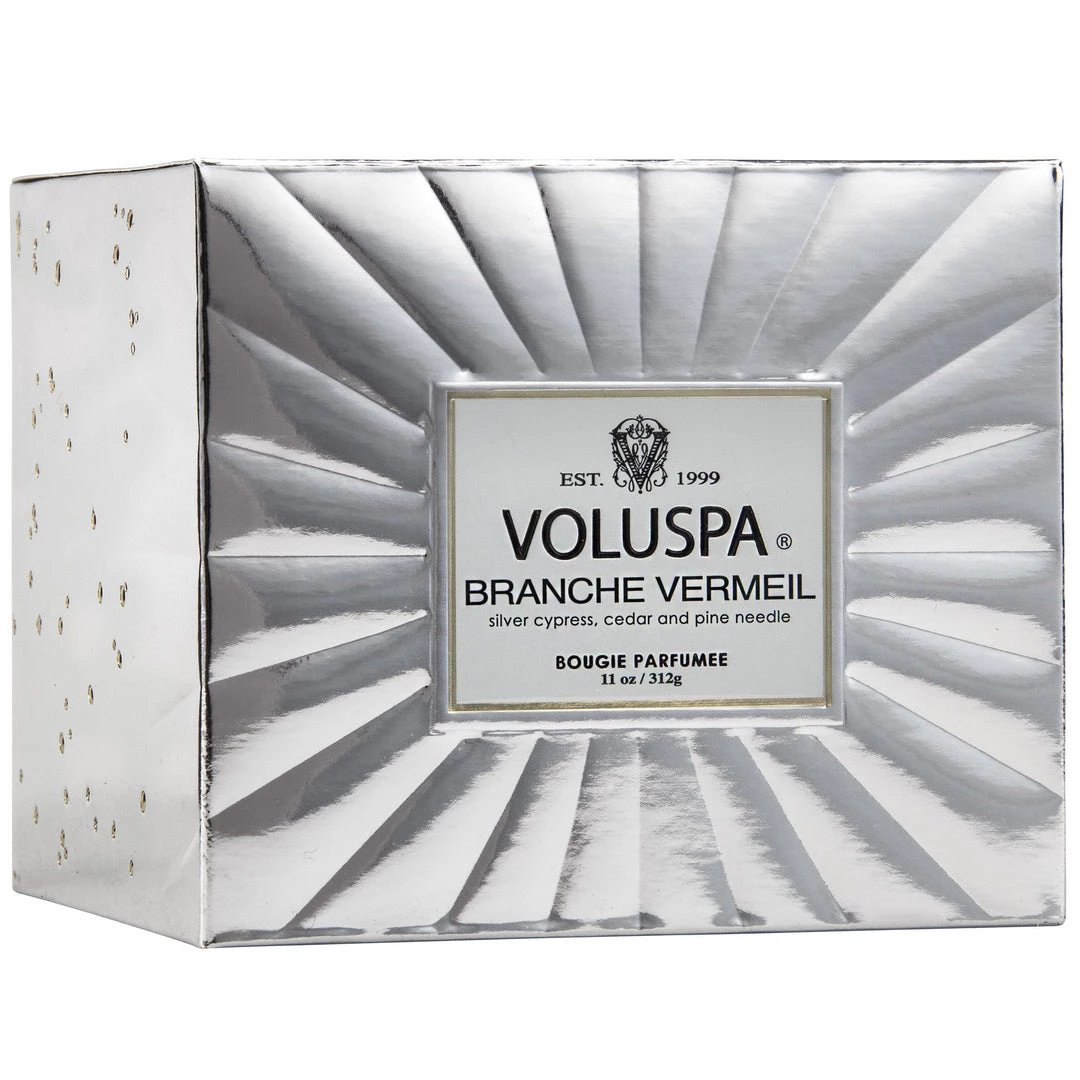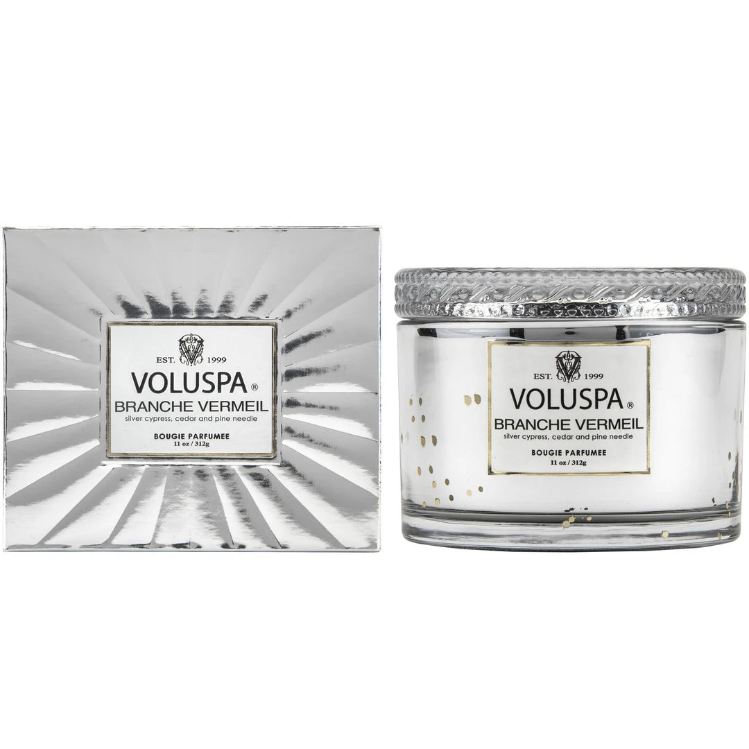 From the gold plating, to the reflective metallic container, this candle exudes class from the inside out. With a nod to 1920s’ design, the details are timeless and replete with glamour. The glass container includes a lid and is one you’ll reuse for years to come.