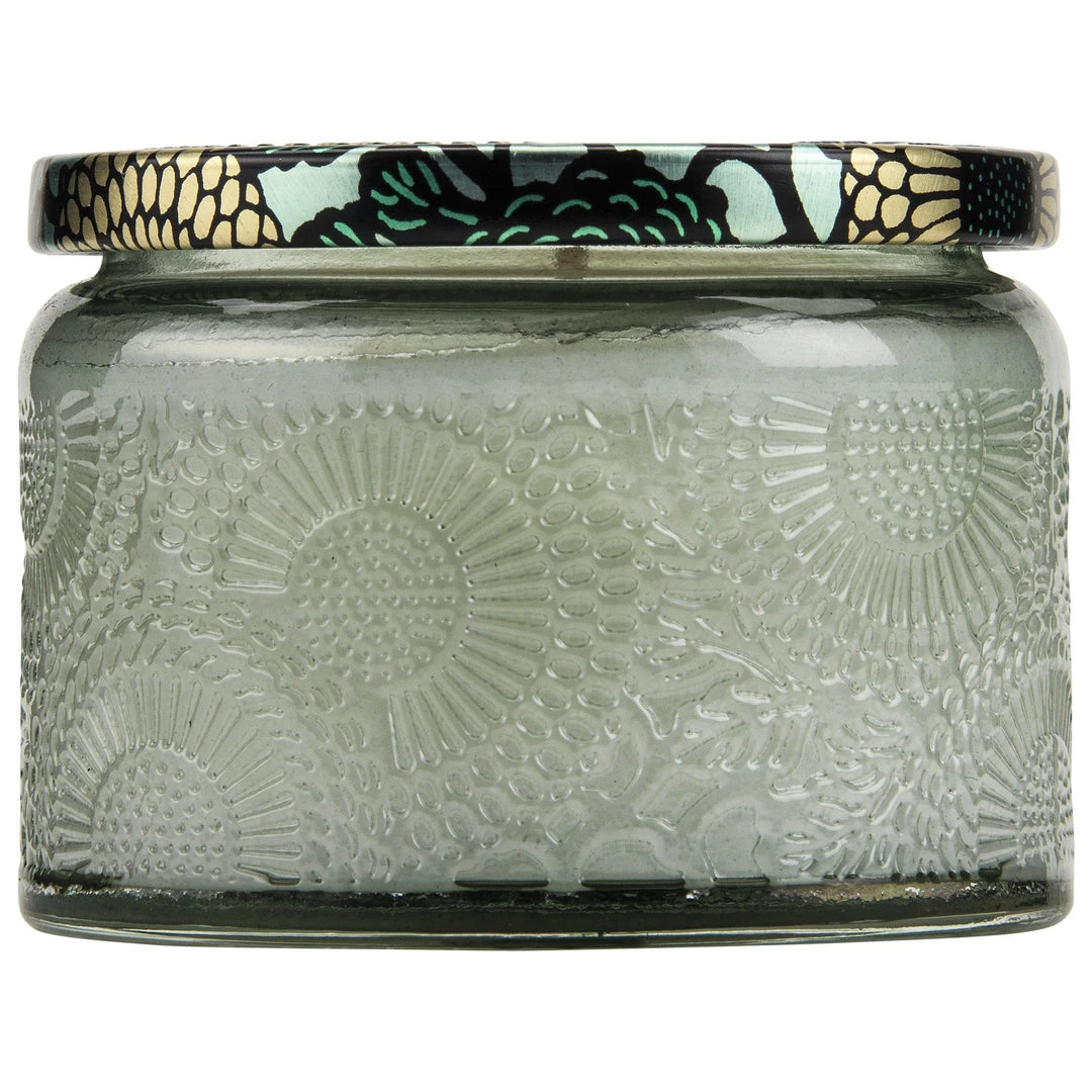 This embossed candle features a metallic lid, making it perfect for travel and smaller spaces. Timeless in both beauty and scent, the Japanese-inspired design translates brilliantly in this petite piece.