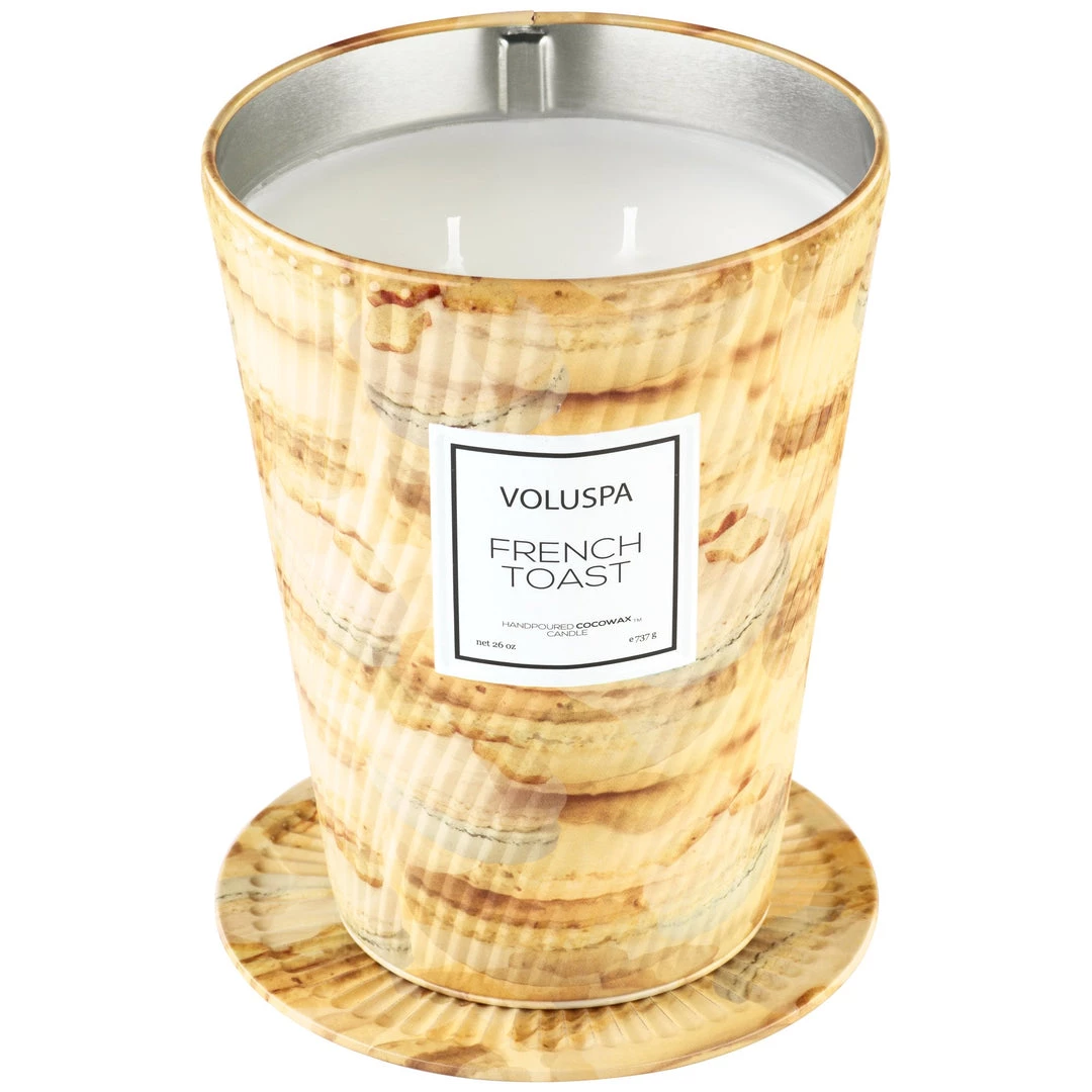 A feast for the senses, the oversized metal cone shaped design of our Ice Cream Cone Table Candle delivers on every level. The colorfully decorated swirl textured container makes an impact both visually and fragrantly. The lid keeps the candle dust free between uses and may also be used to extinguish the candle when desired.