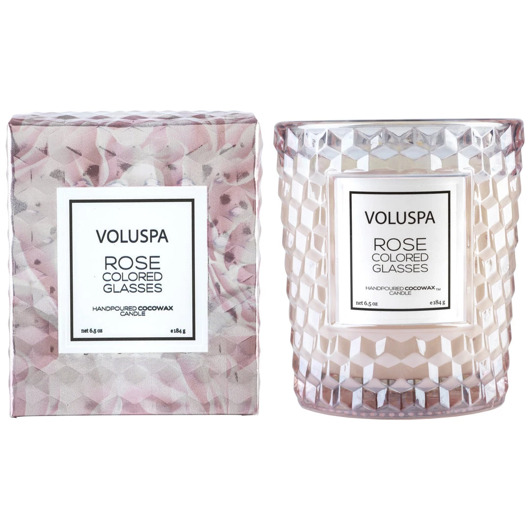 This Classic Candle is delicately sized for any space! The Roses Collection glass is textured with a classic geometric 3D cube pattern and colored to match the rose that served as fragrance and packaging inspiration.
