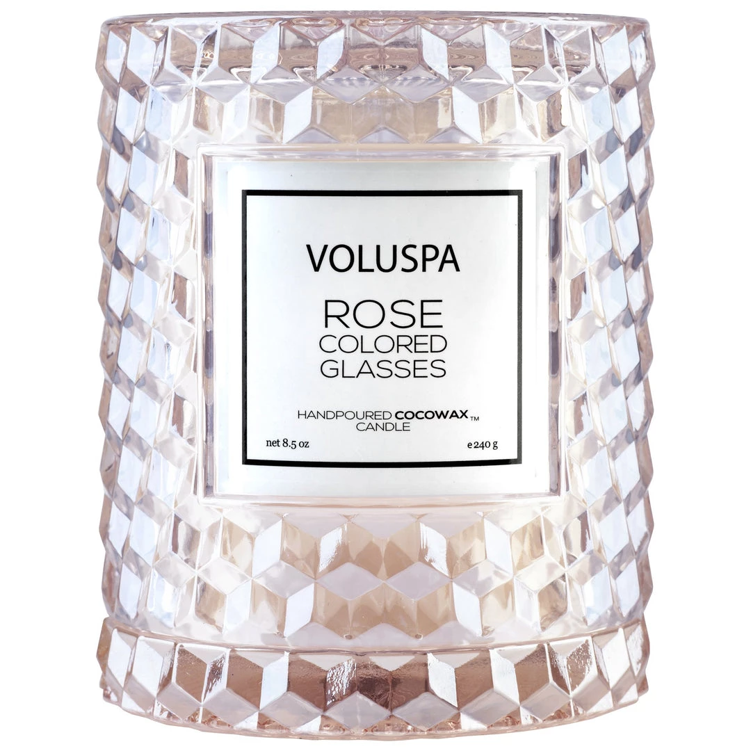 An artistically designed candle glass and cover, the ultimate in functional beauty. This unique candle is an instant upgrade to any space. Use the cover to protect the candle while not in use, or as an easy way to extinguish the flame. This Roses Collection cloche candle has a classic 3D cube pattern and is colored to match the rose that served as fragrance and packaging inspiration.