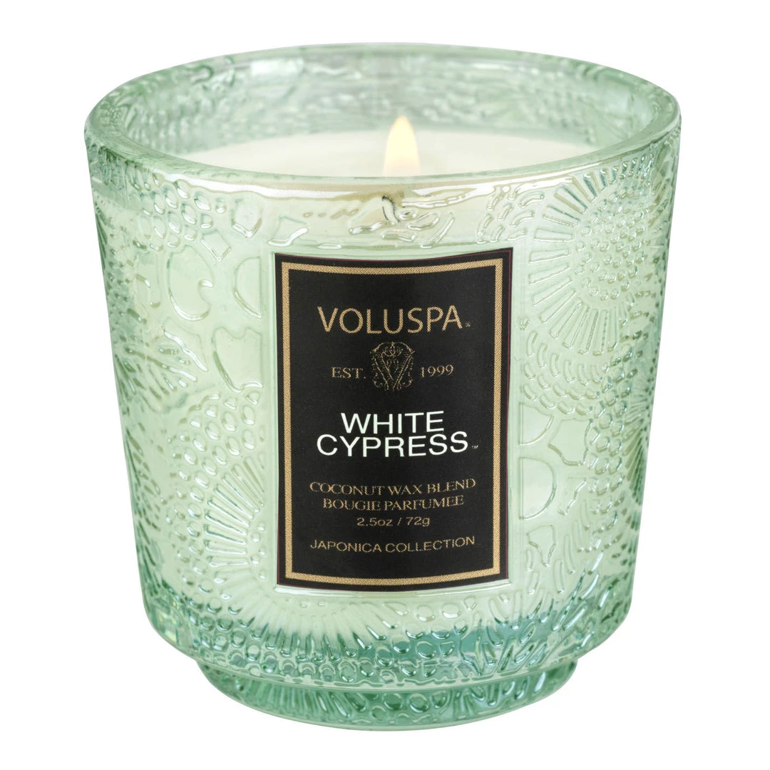 White Cypress, a classic yet contemporary Holiday scent, captures a crisp walk in the winter woods. Frosted Bergamot and Minty Snowdrops perfectly envelop freshly cut Evergreen Cypress boughs and snow-kissed Sugar Plum. Bask in its glow while staying cozy inside.
