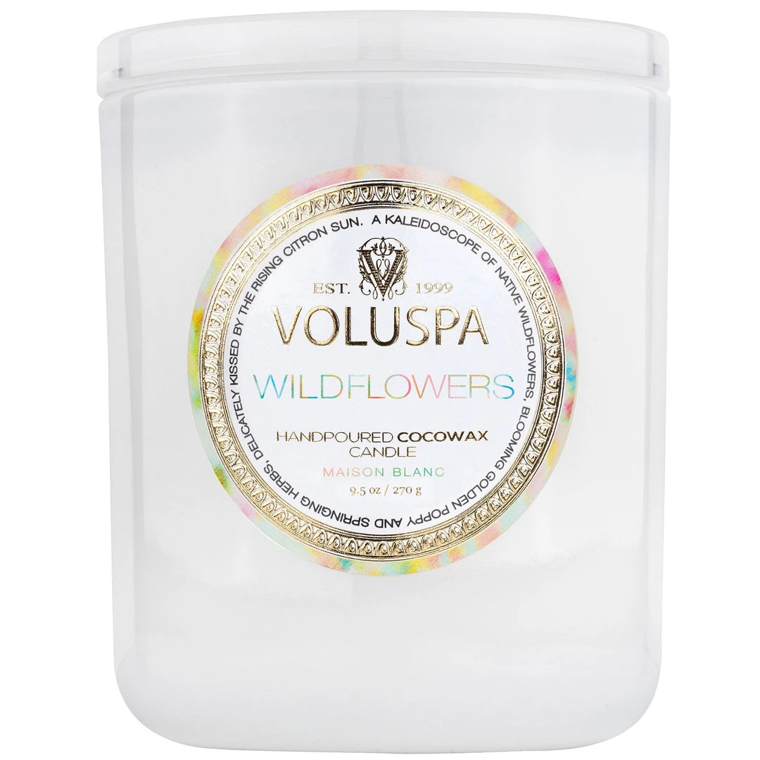 You’ve been called to dance among the wildflowers, losing yourself in the beauty of this unruly floral sea. Lightly pass your hand over a kaleidoscope of Native Wildflowers, blooming Golden Poppy, Ambrosia and springing Herbs; sugared by misty vapors of Blue Agave and delicately kissed by the rising Citron sun. Gently coax this fragrant super bloom of Voluspa’s Wildflowers.