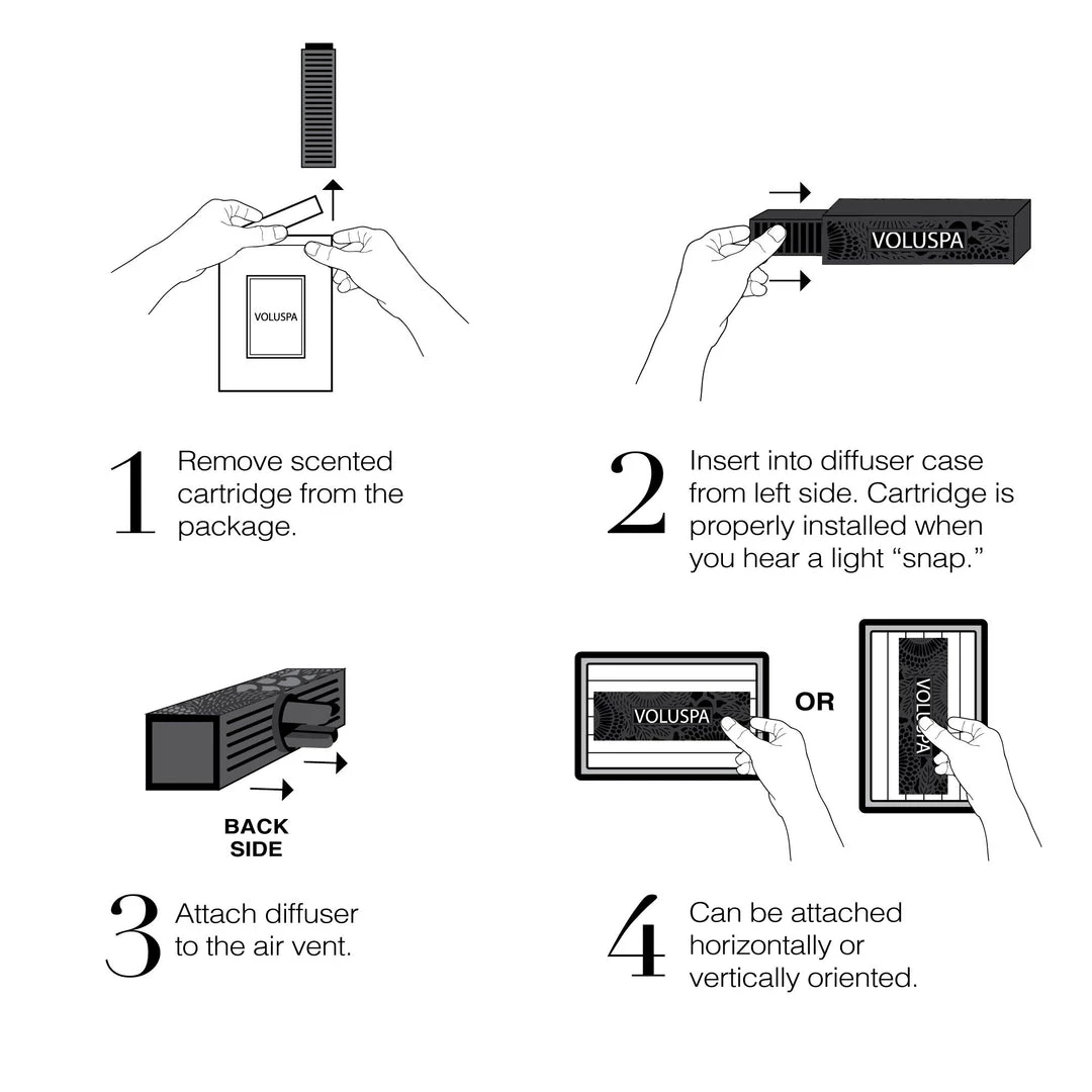 Pop the diffuser on to your car air vent and take VOLUSPA with you wherever you go!