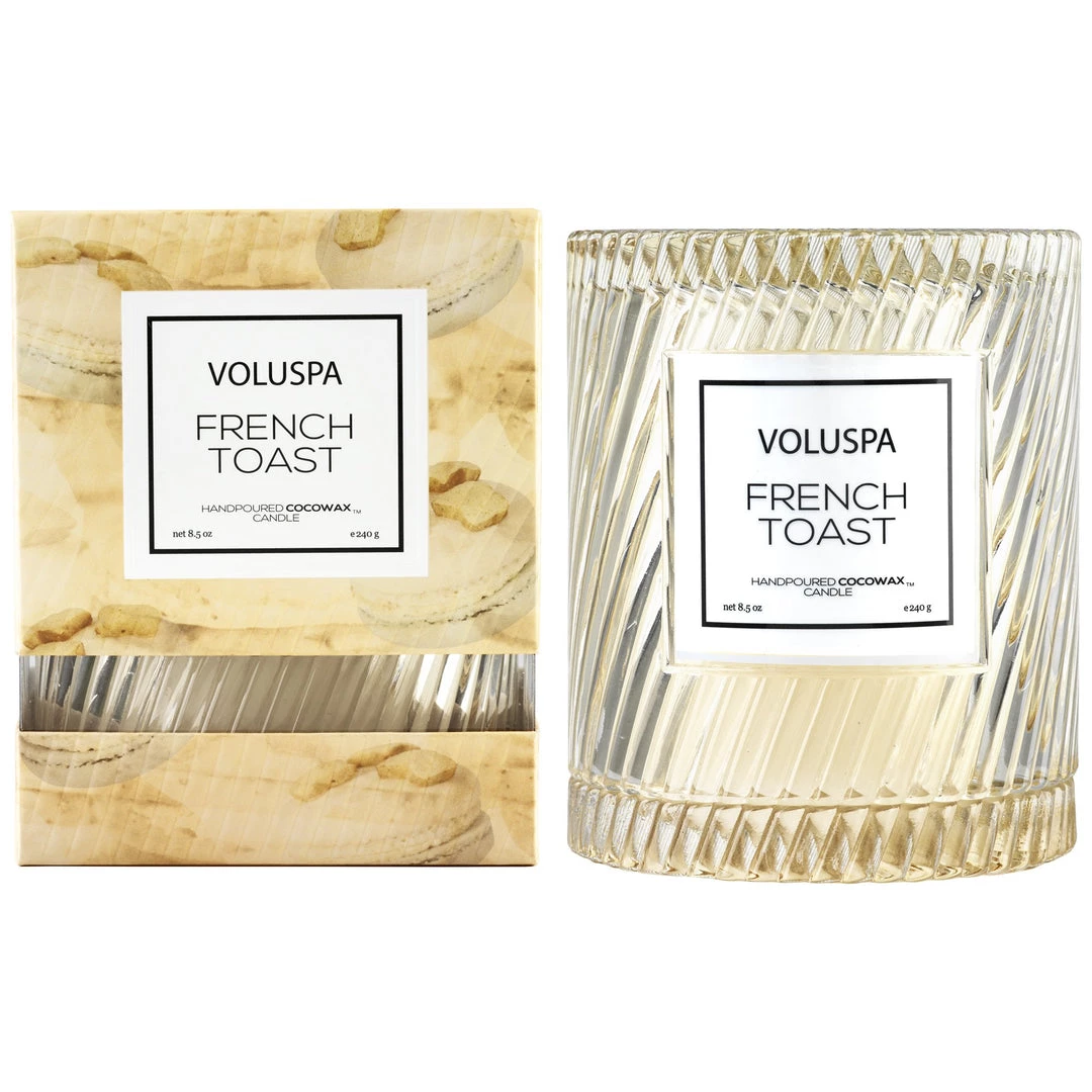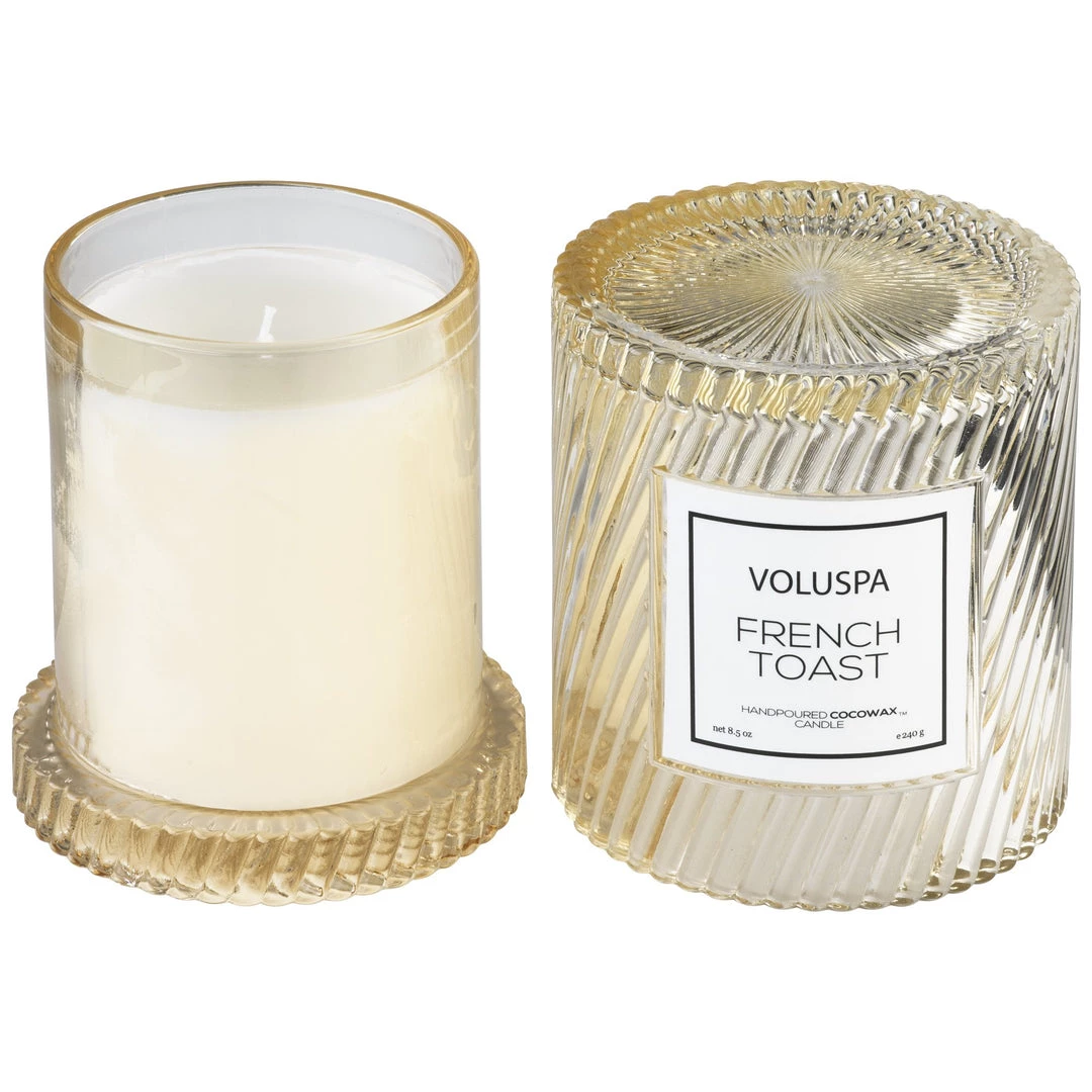 An artistically designed candle glass and cover, the ultimate in functional beauty. This unique candle is an instant upgrade to any space. Use the cover to protect the candle while not in use, or as an easy way to extinguish the flame. The Macaron Collection cloche candle has a soft swirl pattern and is colored to match the cookie that served as fragrance and packaging inspiration.