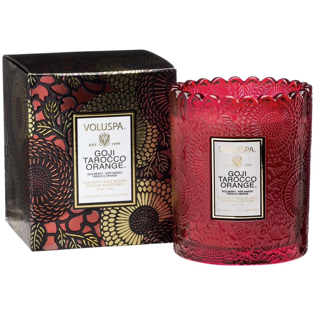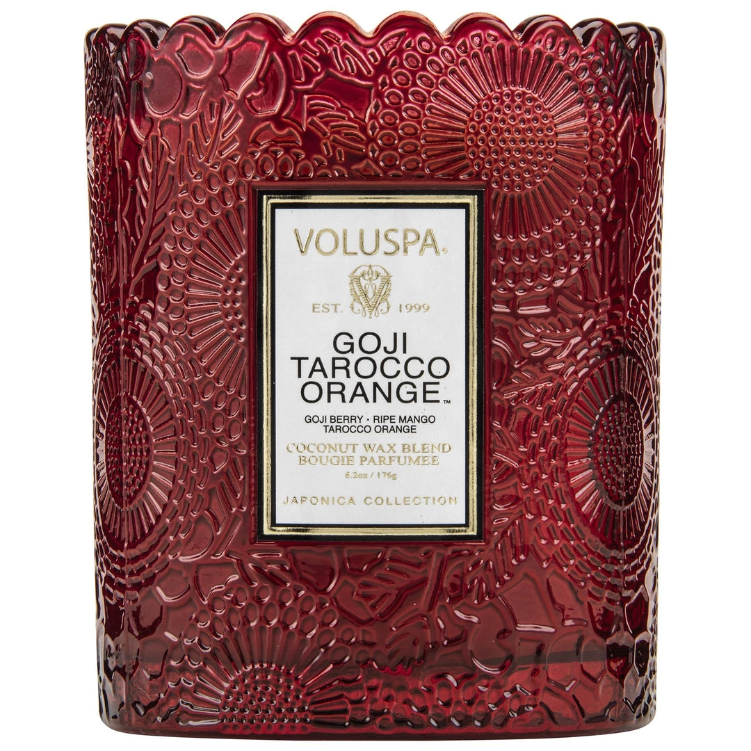 Intricate scalloped edges adorn this embossed glass candle, creating a captivating glimmer and glow. A jewel within our Japonica collection and inspired by the beauty of Japanese paper making, its design is as mesmerizing as the glow it emits. The container will live on in your home as a dazzling accent piece.
