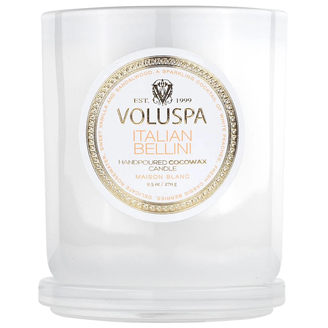 The sleek silhouette of the Classic Candle makes a statement in any room, and exudes elegance with its ambient glow and ample fragrance throw. The candle is designed to sit perfectly in the depression of the coordinating glass lid when lit; and can be used to extinguish the flame when done with use. This stunning duo is packaged in a decorative box with metallic accents, perfect for gift giving.