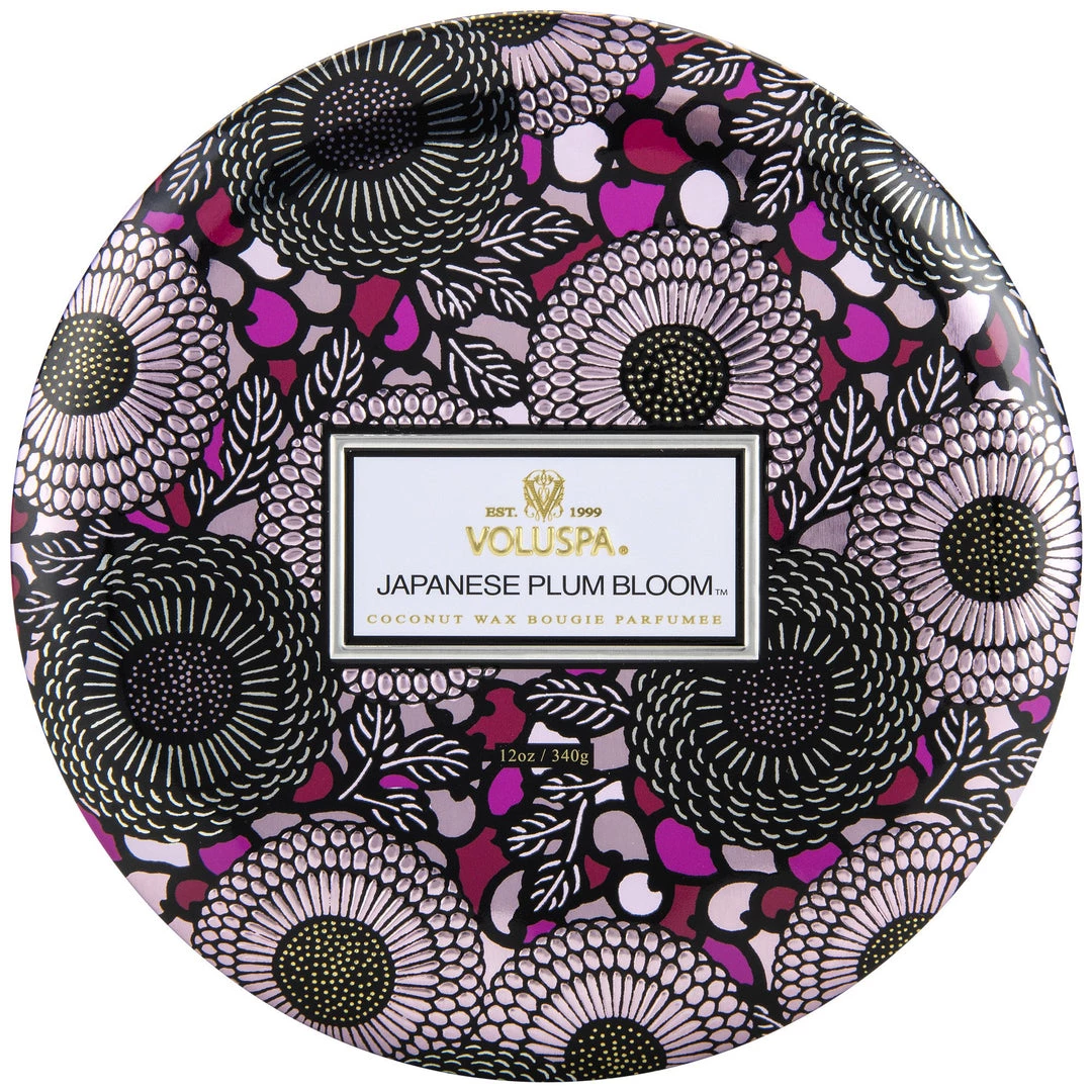 Rich jewel tones adorn this beautifully patterned metallic option, with fragrance wafting from each of its three wicks. The ornate tin features Japanese-inspired art and includes a lid, perfect for keepsakes once it has finished burning.