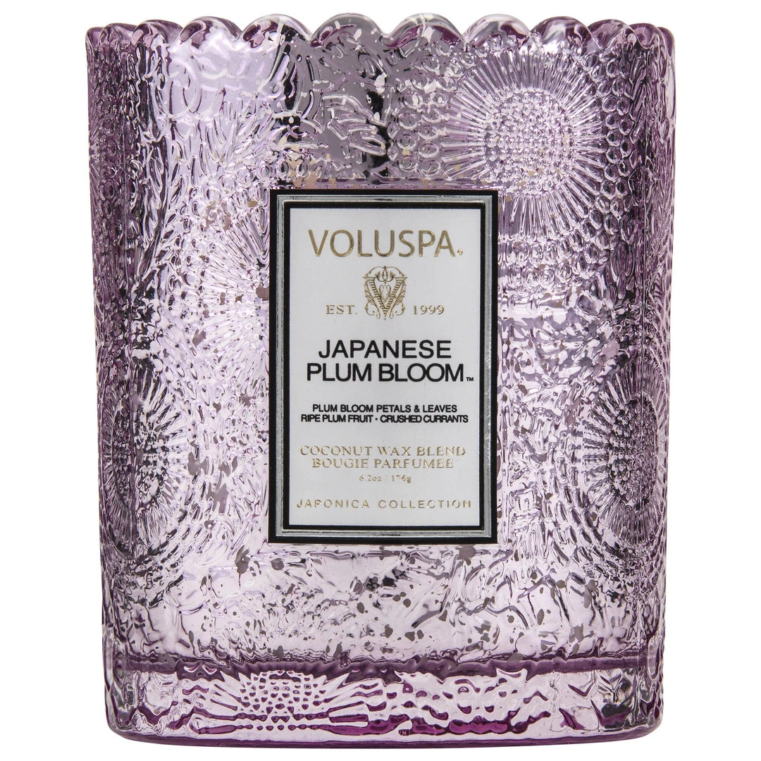Intricate scalloped edges adorn this embossed glass candle, creating a captivating glimmer and glow. A jewel within our Japonica collection and inspired by the beauty of Japanese paper making, its design is as mesmerizing as the glow it emits. The container will live on in your home as a dazzling accent piece.