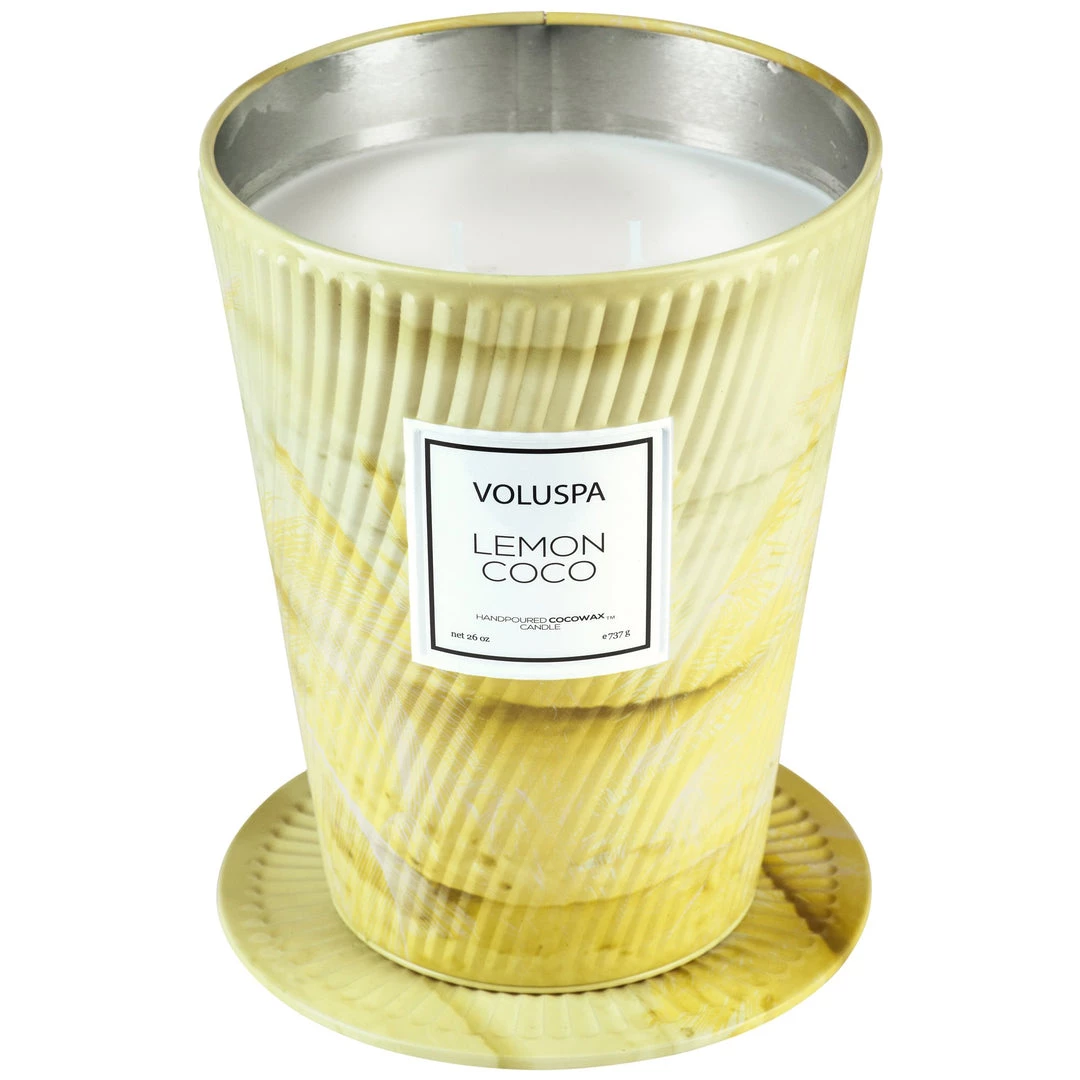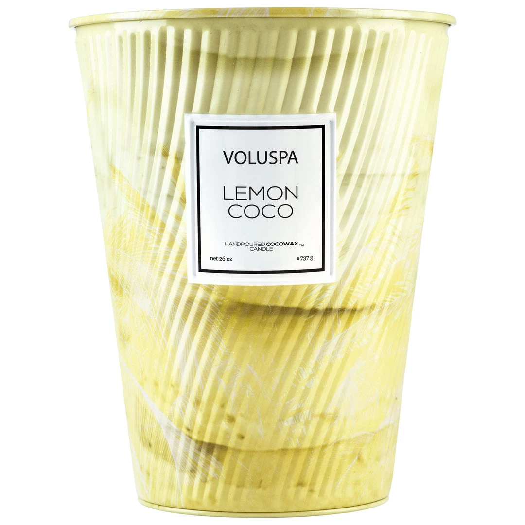 A feast for the senses, the oversized metal cone shaped design of our Ice Cream Cone Table Candle delivers on every level. The colorfully decorated swirl textured container makes an impact both visually and fragrantly. The lid keeps the candle dust free between uses and may also be used to extinguish the candle when desired.