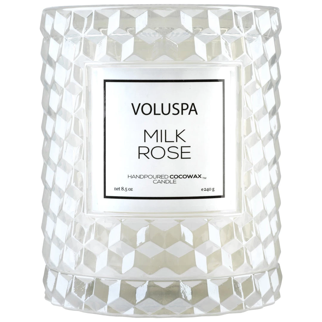 An artistically designed candle glass and cover, the ultimate in functional beauty. This unique candle is an instant upgrade to any space. Use the cover to protect the candle while not in use, or as an easy way to extinguish the flame. This Roses Collection cloche candle has a classic 3D cube pattern and is colored to match the rose that served as fragrance and packaging inspiration.