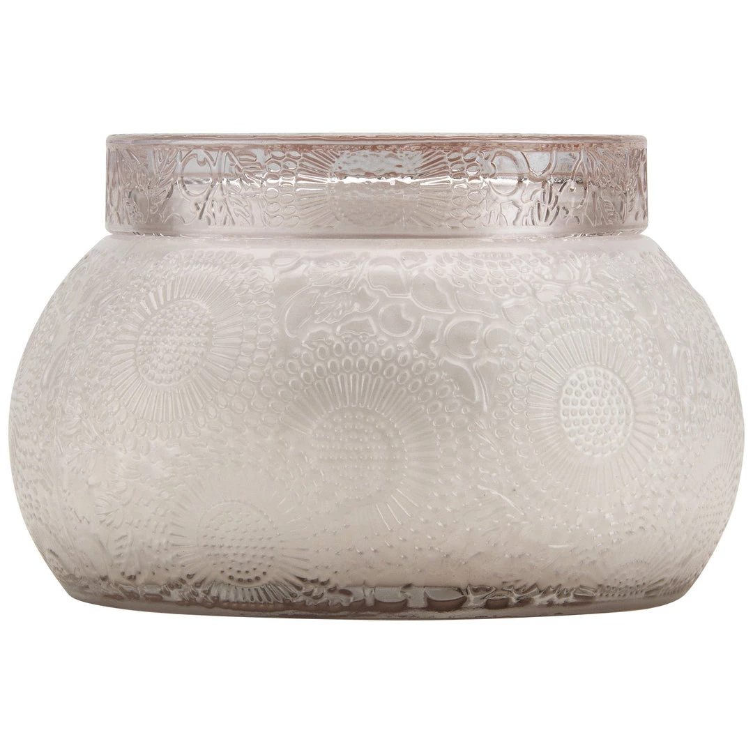 Its richness in both aroma and design is showcased in a lidded glass bowl; an ode to Japanese beauty. Embossed with salient detail, the container is a perfect centerpiece while accessorizing a space, as the clean burn delivers fragrance to every corner.