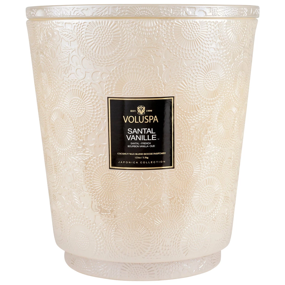 Our largest format colored in a gorgeous shimmering pearlescent hue and embossed with our iconic Japonica pattern. Matching glass lid doubles as a candle tray!