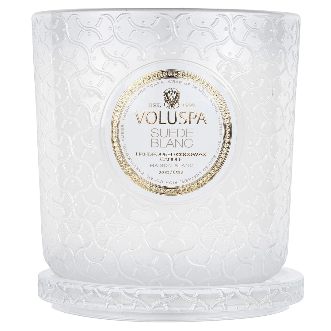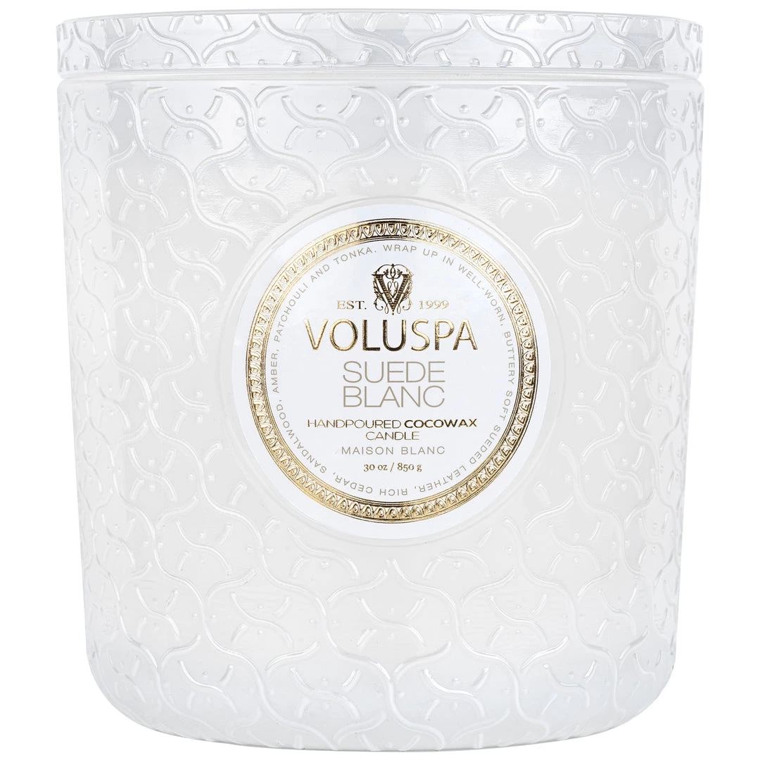 There is no shortage of luxury in our Maison Luxe Jar Candle. Voluspa’s signature Maison pattern wraps the vessel in an elegant emboss from base to lid. The triple wick configuration transforms the ambience with its reflective glow, creating a generous wax pool to ensure abundant fragrance throw. As a finishing touch, the candle is perfectly designed to fit in the depression of the lid when lit.