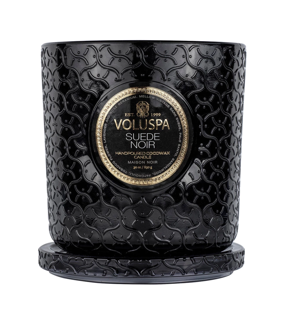 There is no shortage of luxury in our Maison Luxe Jar Candle. Voluspa’s signature Maison pattern wraps the vessel in an elegant emboss from base to lid. The triple wick configuration transforms the ambience with its reflective glow, creating a generous wax pool to ensure abundant fragrance throw. As a finishing touch, the candle is perfectly designed to fit in the depression of the lid when lit.